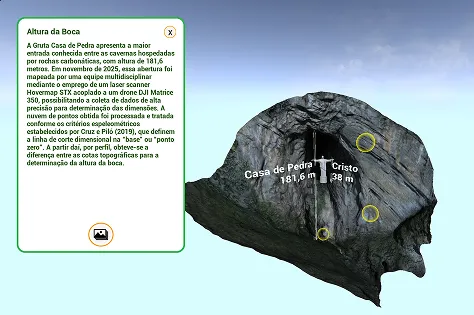 O mapeamento 3D permite compreender a Casa de Pedra de forma precisa e detalhada, sem interferir em sua estrutura natural ou comprometer suas formações.